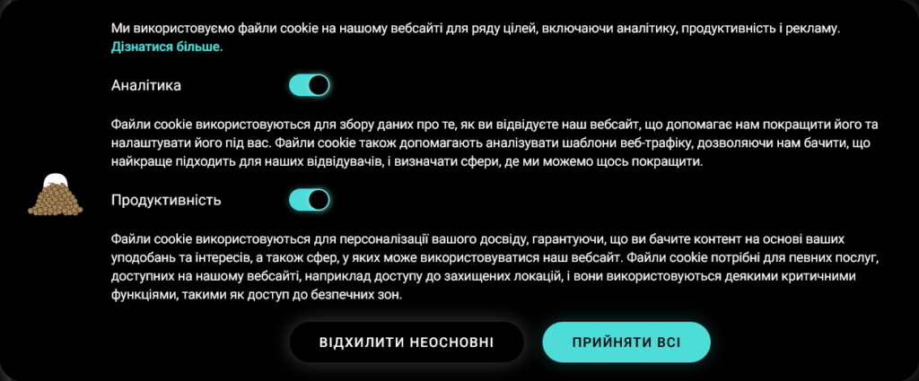Користувач може обмежити персоналізовану рекламу, керувати cookies і частково контролювати аналітичні дані. Це не повний контроль, але значно кращий рівень прозорості та гнучкості порівняно з іншими досліджуваними сервісами онлайн-знайомств.