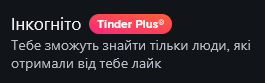 Режим інкогніто є, але тільки як платна функція — з нею профіль бачать лише ті, кого користувач лайкнув. Базовий рівень приватності фактично монетизовано, що створює ризик небажаної уваги для користувачів, які прагнуть бути менш помітними.