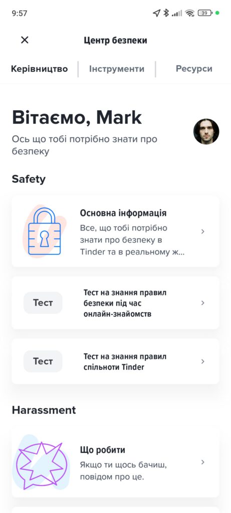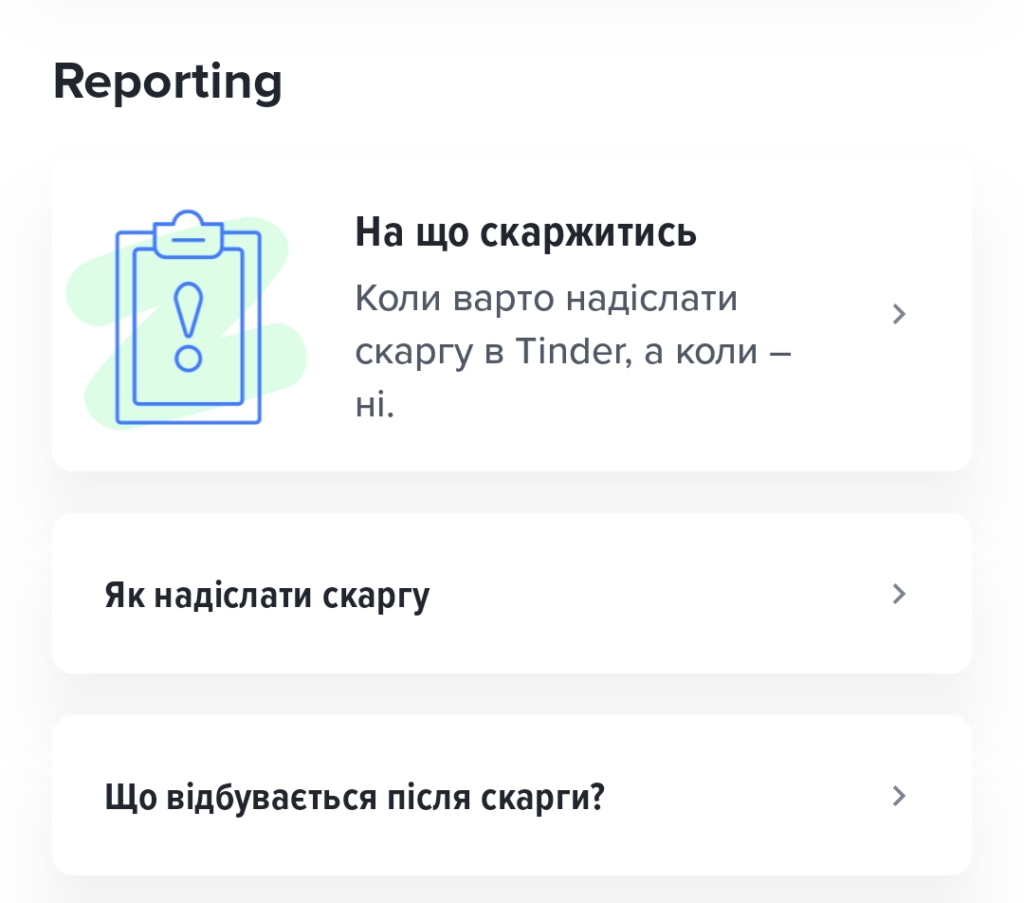 Tinder компенсує прогалини в базовій безпеці освітніми ініціативами. В застосунку, приміром, є інтерактивні тести на знання правил цифрової безпеки. Компанія також оприлюднила AI Principles — декларацію етичного використання ШІ та алгоритмічних систем.